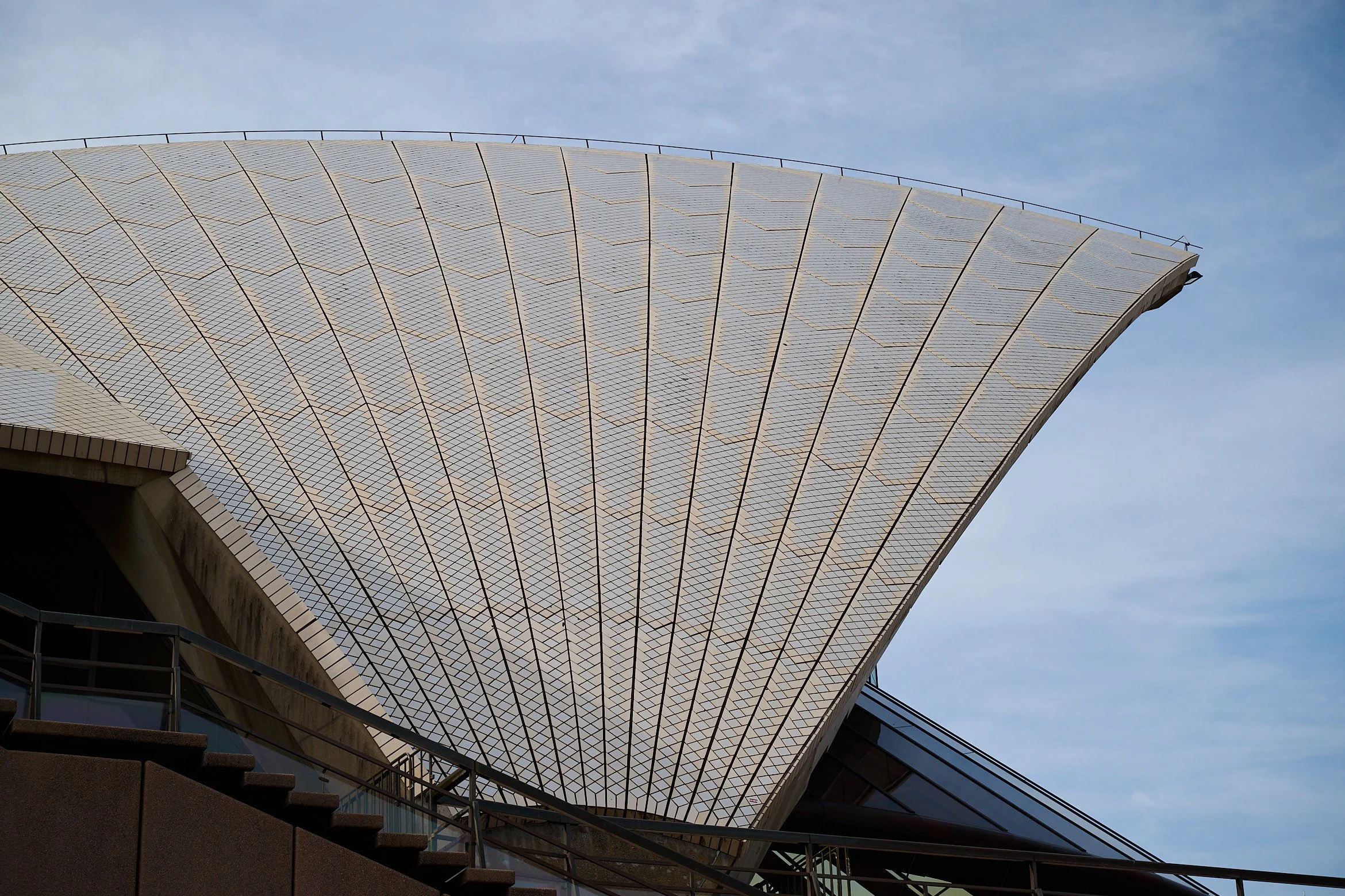 That’s right. The stunning clam-shell design is tiled. And, up close, they aren’t actually white. The roof is made up of off-white tiles, with another set of beige outlines. From far away, it tricks the eye (and the camera lens) to look nearly white, but this new detail was one of many reasons that visiting it in person was an awe-inspiring experience.